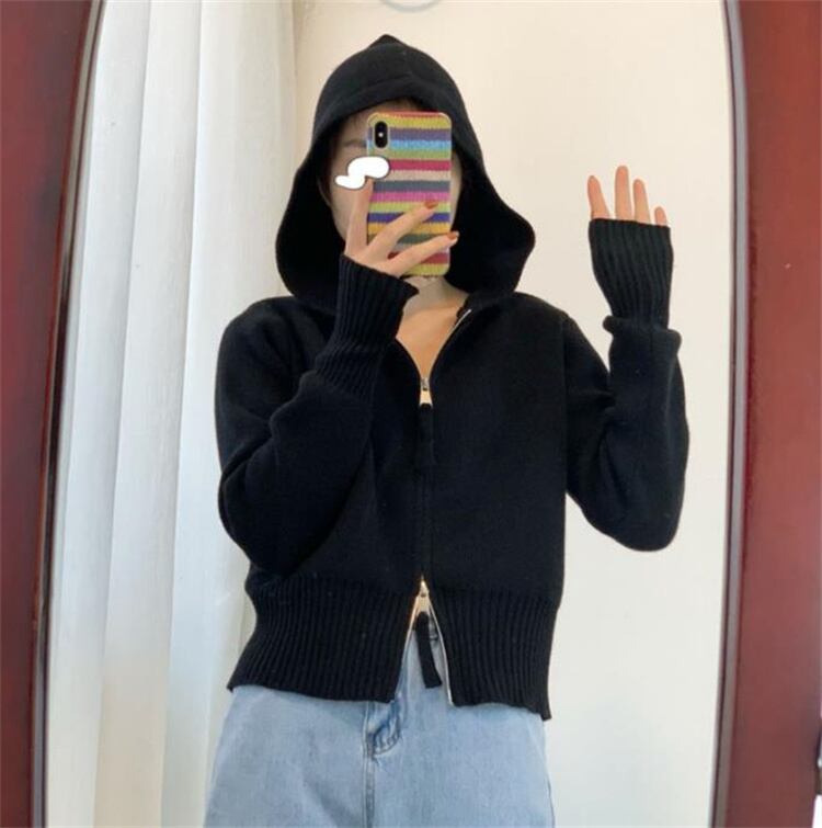 フード付き カーディガン 気質 ニットトップス スリム コート オシャレ 洗練された 短いスタイル