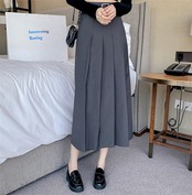 プリーツスカート ハイウエスト デザインセンス 中長セクション ロングスカート