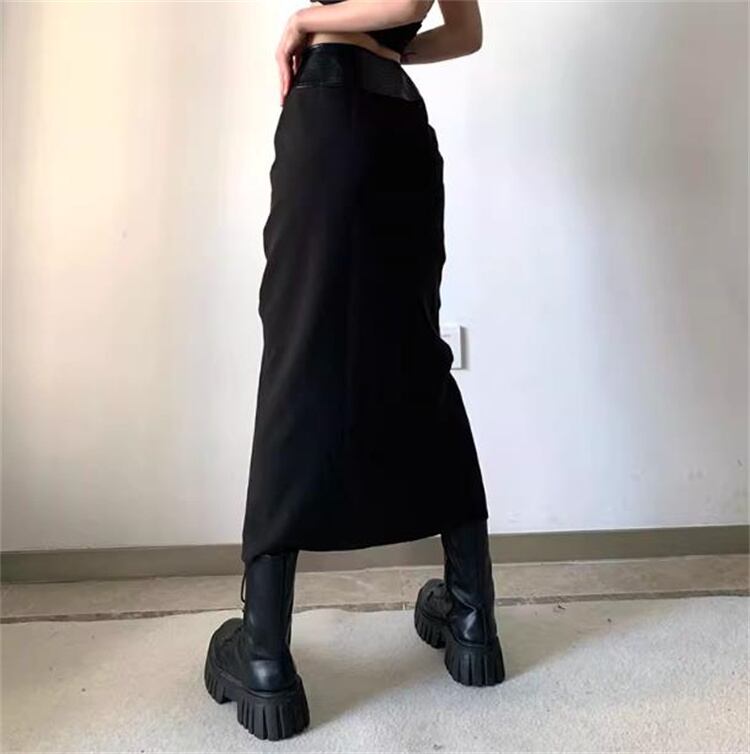 大人のデイリーウエア 潮酷 個性 フォールド スリムフィット ジッパー ハイウエスト ロングスカート