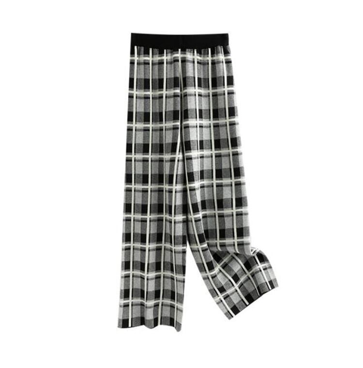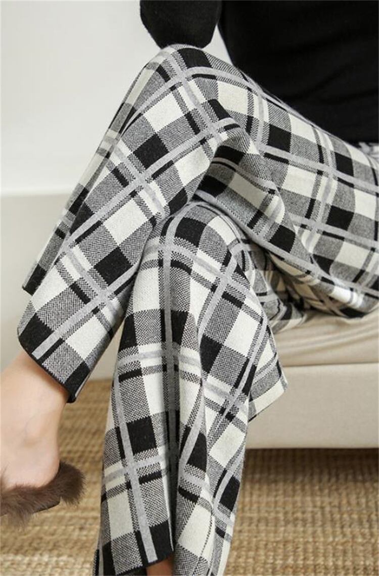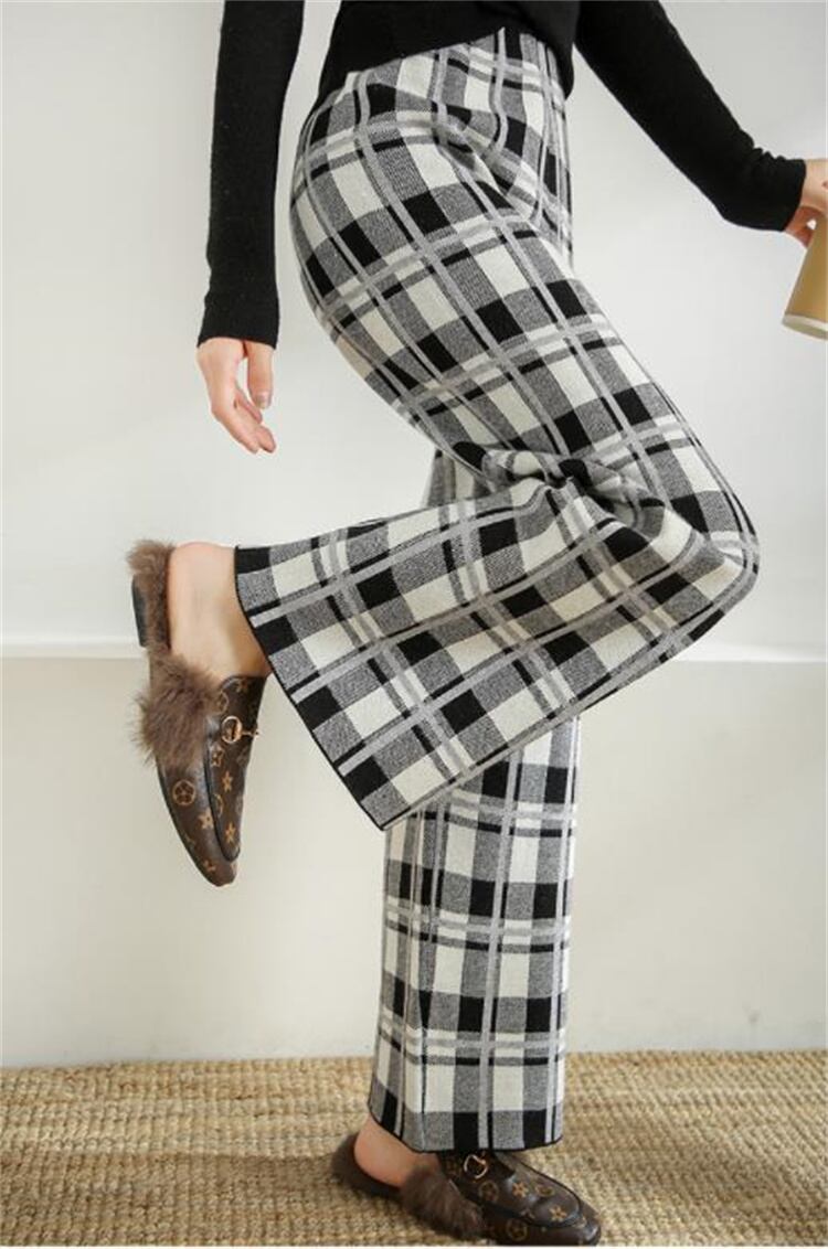 自在の着回しコーデ効果抜群 ハイウエスト 格子縞 ウールパンツ カジュアルパンツ レディース ニットパンツ
