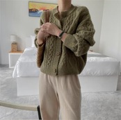 ツイスト 暖かい 厚手 ピュアカラー セーター 短いスタイル ショート カーディガン スリム