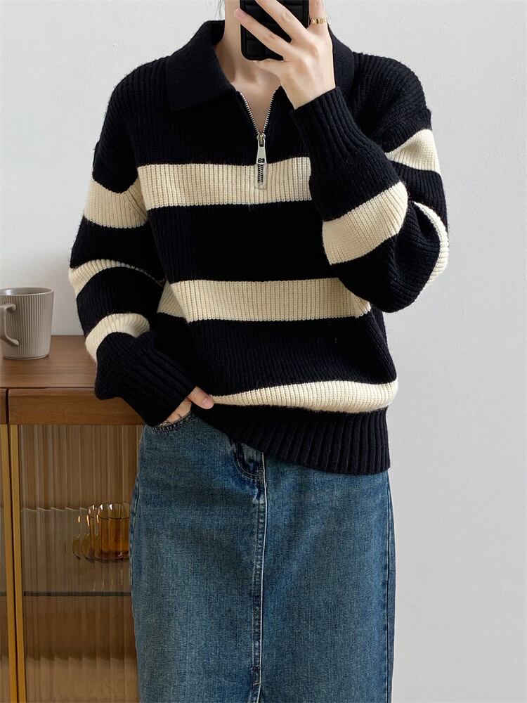 冬 新しい ゆったりする ボーダー ニットトップス スリム 怠惰な風