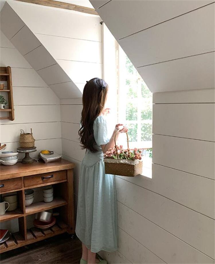 パフスリーブ お出かけ フォールド 2点セット ロングスカート