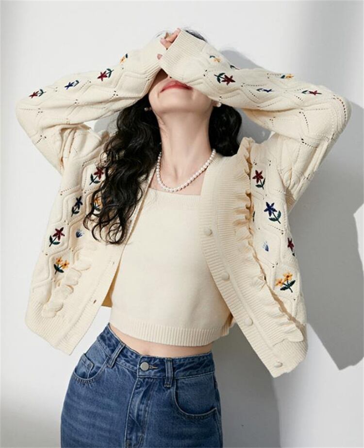 Vネック コート カーディガン 大人気 カジュアル 花柄 ニットトップス
