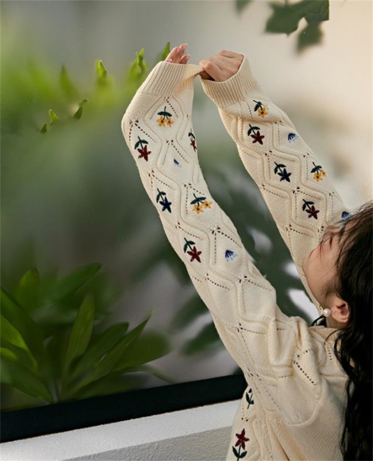 大人可愛い花柄がアクセントのVネックコートカーディガン。程よい厚みのニット素材で、暖かく着心地も抜群です。カジュアルなデザインながらも、上品な印象を与える一枚です。花柄は気分を明るくしてくれるので、お仕事やデートなど、様々なシーンで活躍します。また、たっぷりとした襟元は首元も暖かく見せてくれます。柔らかな素材感なので、体にフィットして自由な動きが楽しめます。どんなスタイルにも合わせやすく、ワードローブの主役になること間違いなしです!ぜひコーディネートに取り入れて、おしゃれな冬を過ごしてください。