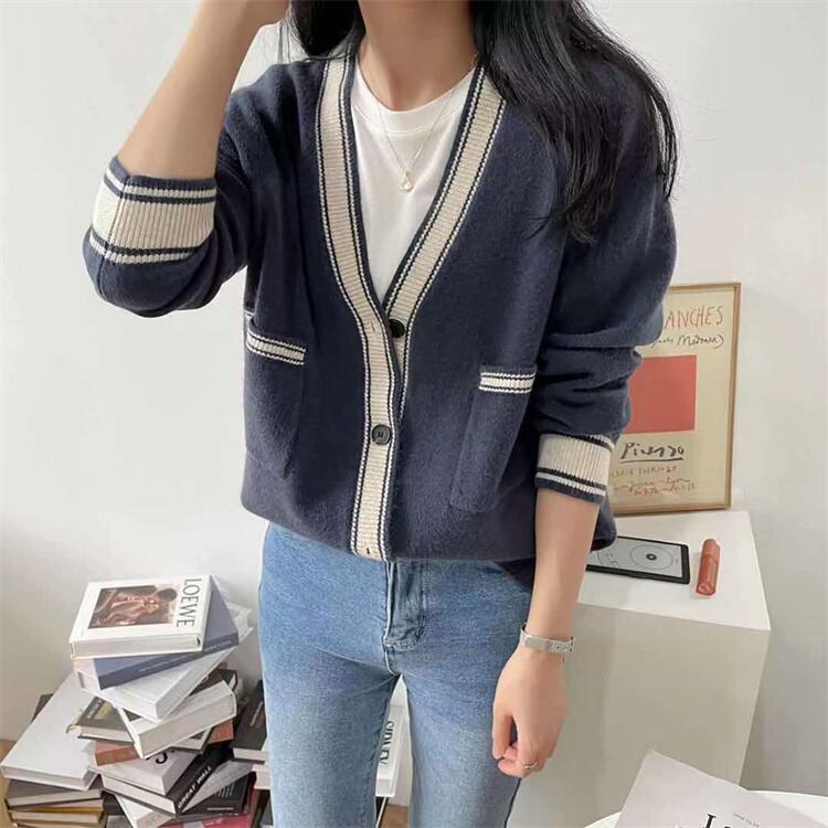 ニットトップス 単体ボタン カーディガン ギャザリング スリム セーター