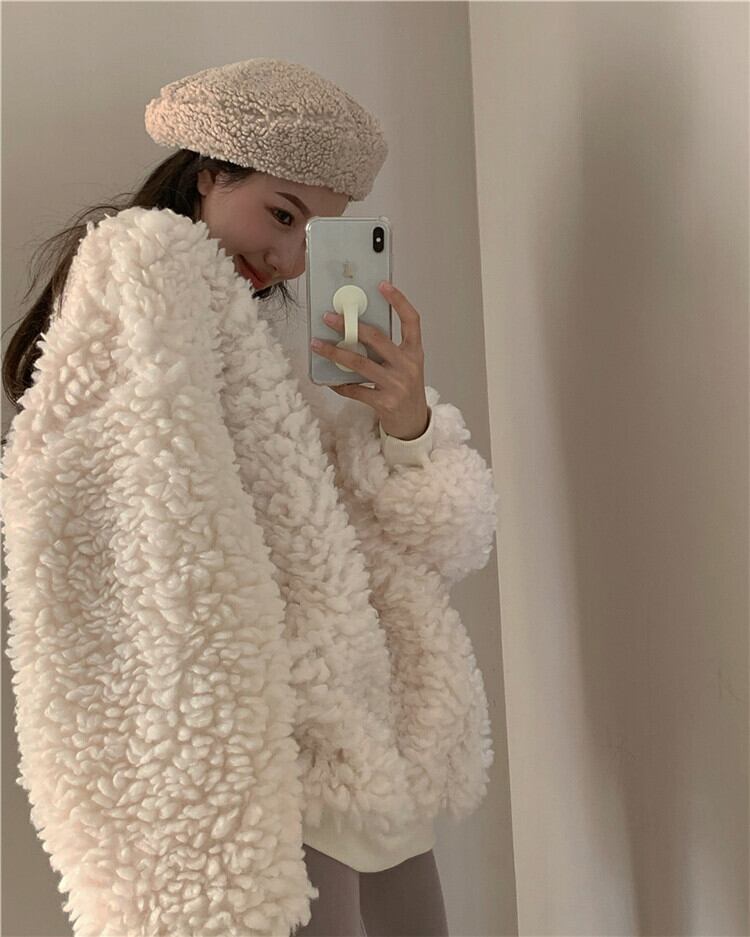 韓国ファッション 子羊の毛 バーカー 韓国版 トレンド 中・長セクション