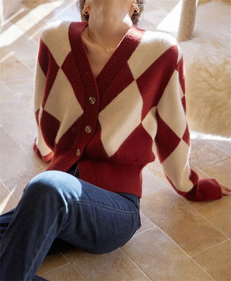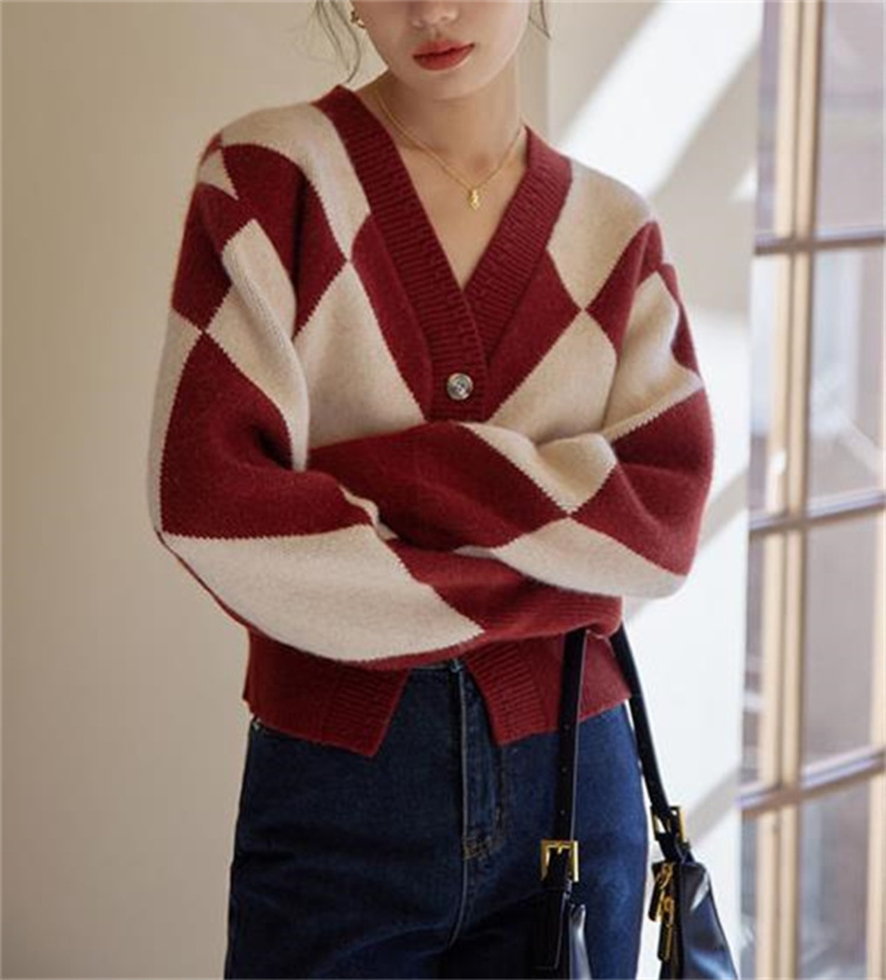 ウール混紡 菱格 新年 セーター vネック ニットトップス カーディガン