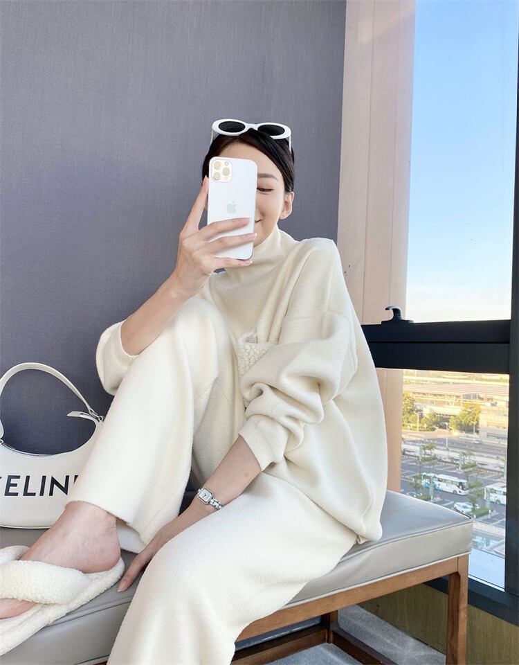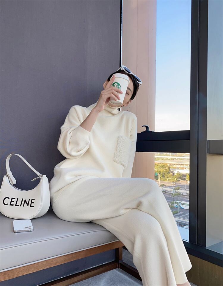 ニットトップス タートルネック セーター 2点セット 大人気 ワイドパンツ ファッション