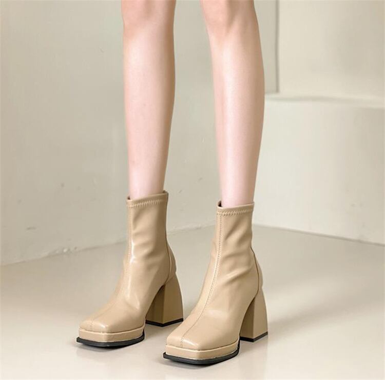 トレンド 気質 スリム ハイヒール ショートブーツ 太いヒール