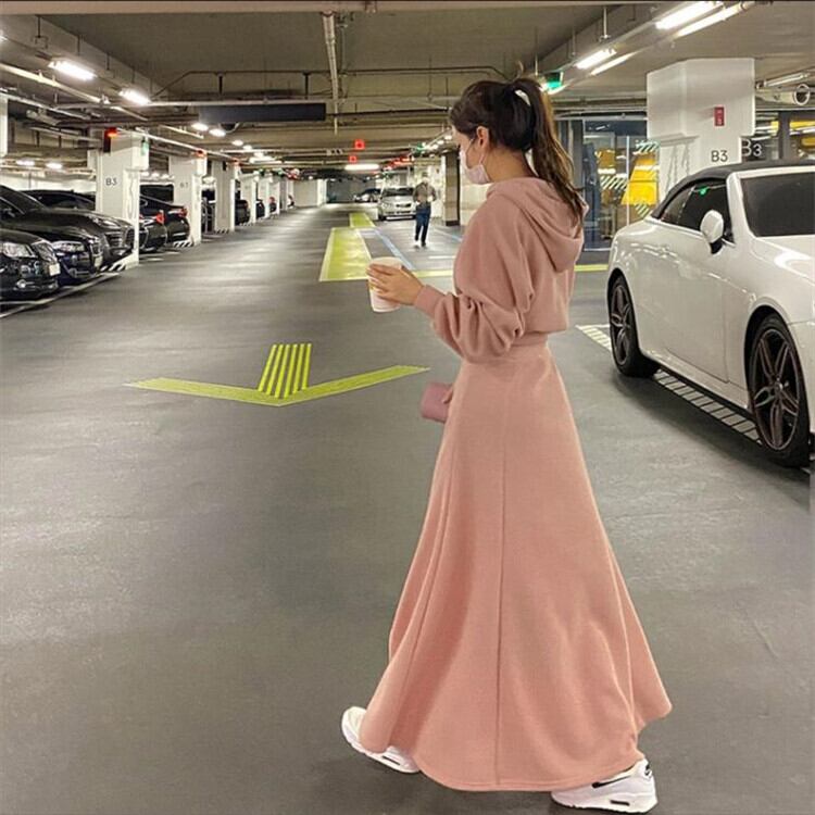 女子ウケするおしゃれの秘訣 秋冬 バーカー ハイウエスト Aライン ロングスカート 2点セット