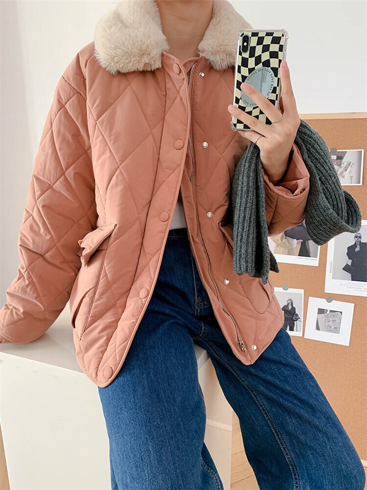 毛皮の襟 ダウン コットンジャケット 気質 カジュアル 女性 暖かい