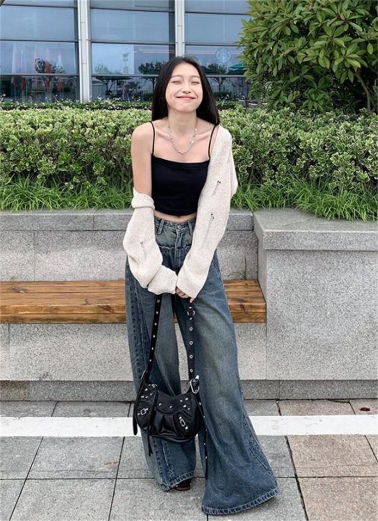 ワイドパンツ 大人気 ロングパンツ 快適である 縫付 ジーンズ 秋 フェイク2ピース