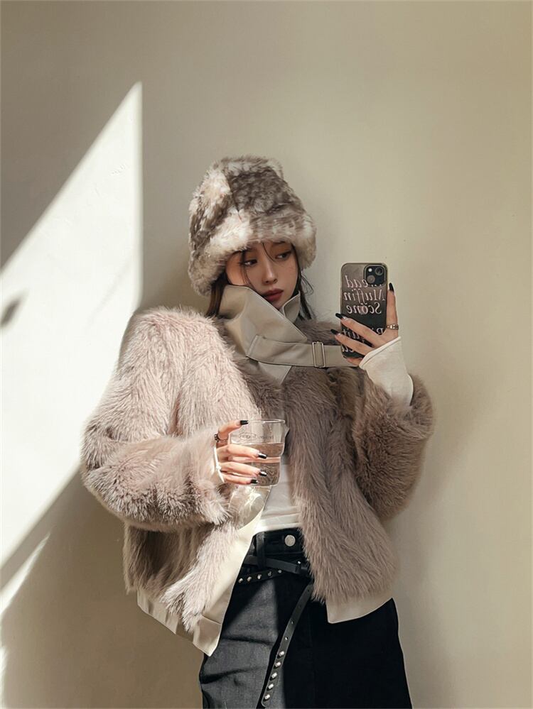 レトロで上品な雰囲気の秋冬用チェスターコート。暖かい素材で作られており、寒い冬にもぴったりです。美しい毛皮の一体型デザインが、高級感とエレガントさを醸し出しています。
