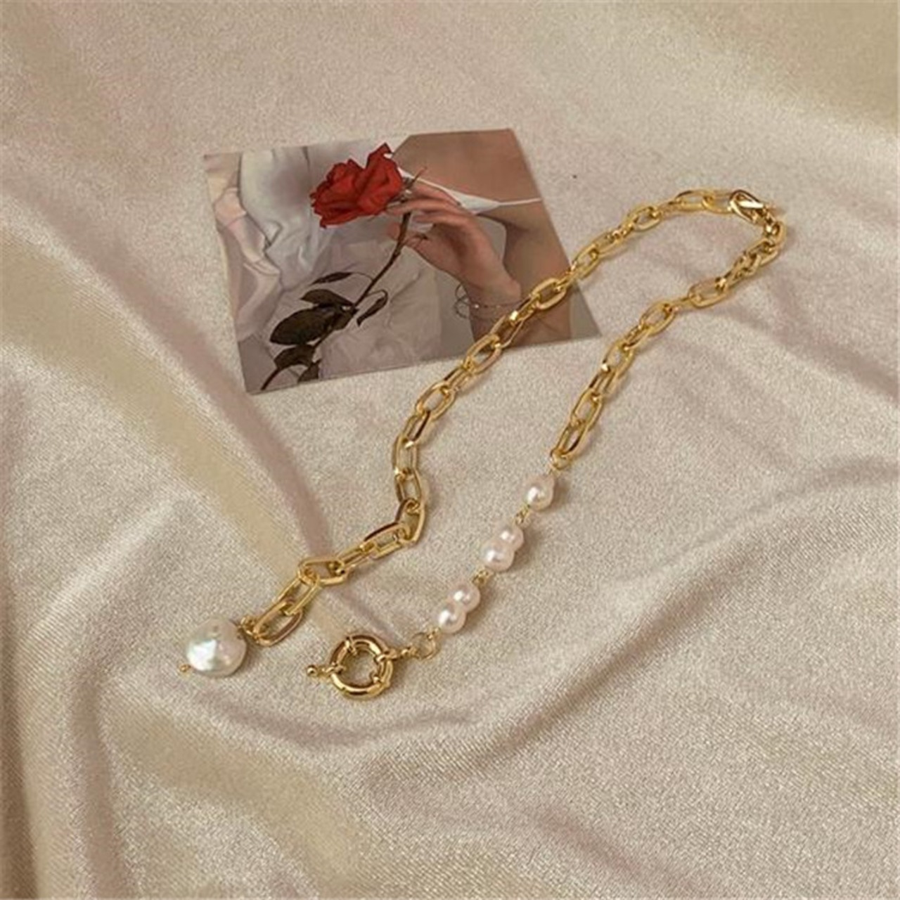 上品な輝きが魅力のネックレス、ライトラグジュアリーの百掛けロングセクションが登場しました。洗練されたデザインで、華やかさと上質感を両立しています。厳選された素材を使用し、職人の手によって丁寧に作られたこのネックレスは、上品さを求める大人の女性にぴったりです。